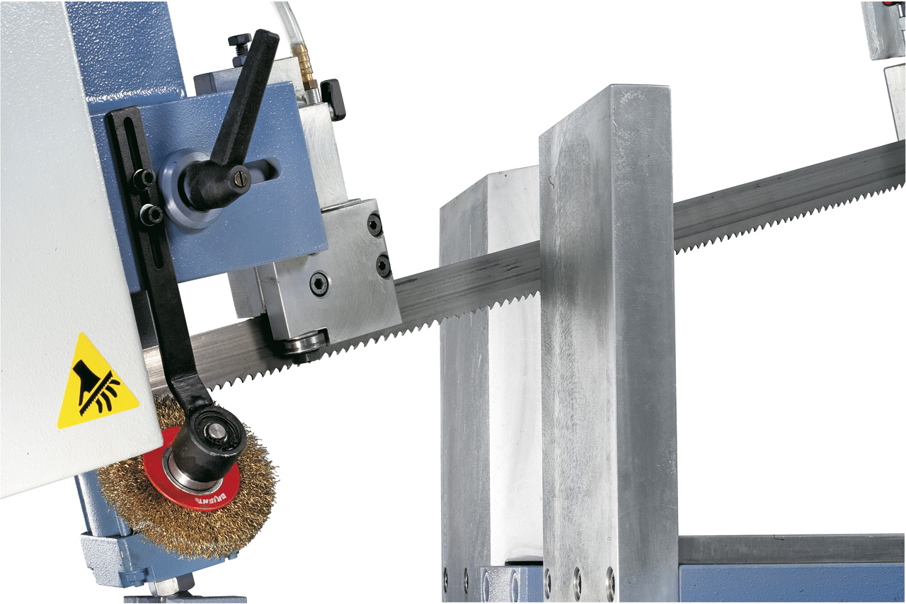Die kugelgelagerte Sägebandführung sowie die höhenverstellbare Spänebürste sorgen für eine lange Lebensdauer des Sägebandes.