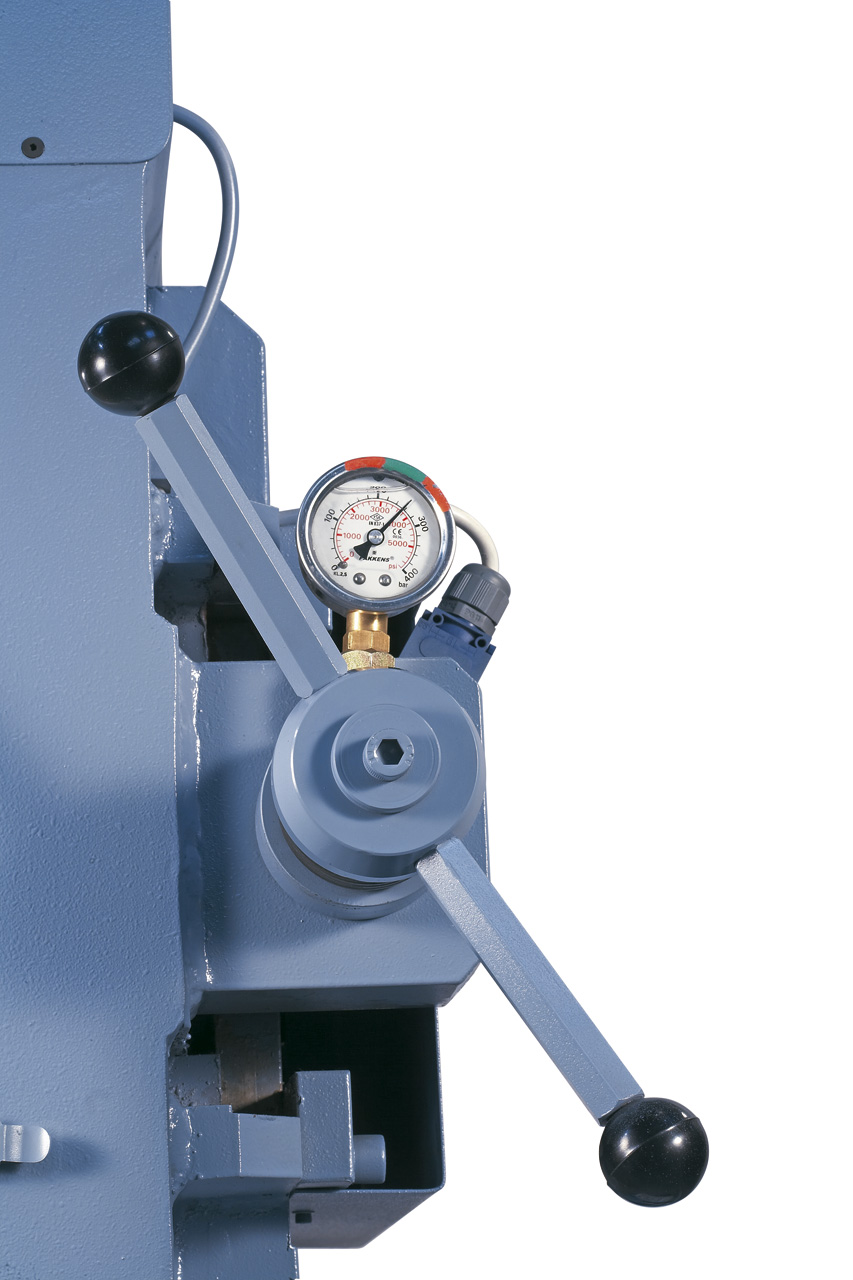 Ein exaktes Einstellen der richtigen Sägebandspannung erfolgt über das serienmäßige Manometer.