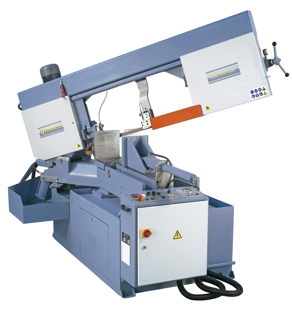 Beschreibung: Das Modell MSB 440 DGH ist eine halbautomatische Doppelgehrungsbandsäge für Gehrungsschnitte bis 60°. Die stufenlose Schnittgeschwindigkeit sowie der hydraulische Schraubstock ermöglichen ein komfortables Arbeiten. Ihren Einsatzbereich findet diese Maschine in Schlossereien, Reparaturbetrieben, im Formen- und Werkzeugbau, ... Features: