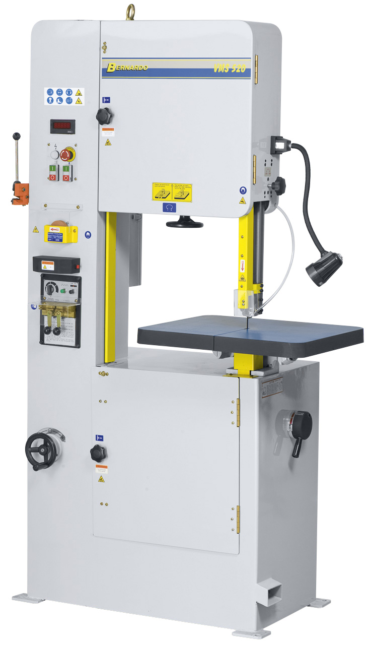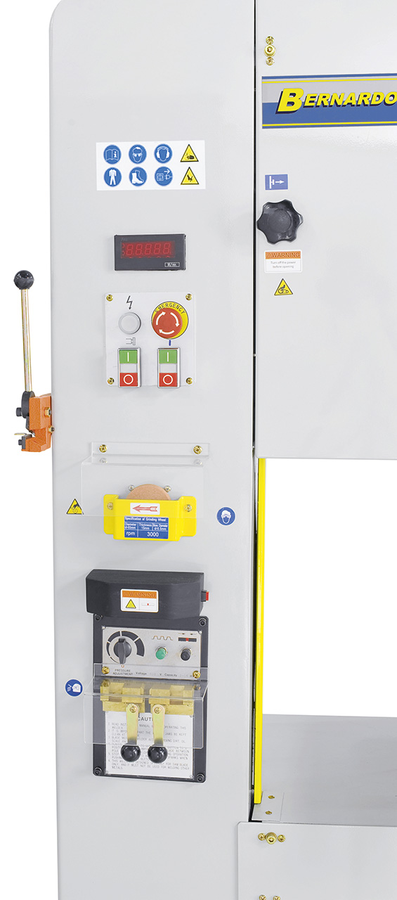 Kugelgelagerte Sägebandführung, einstellbar auf die jeweilige Werkstückhöhe.