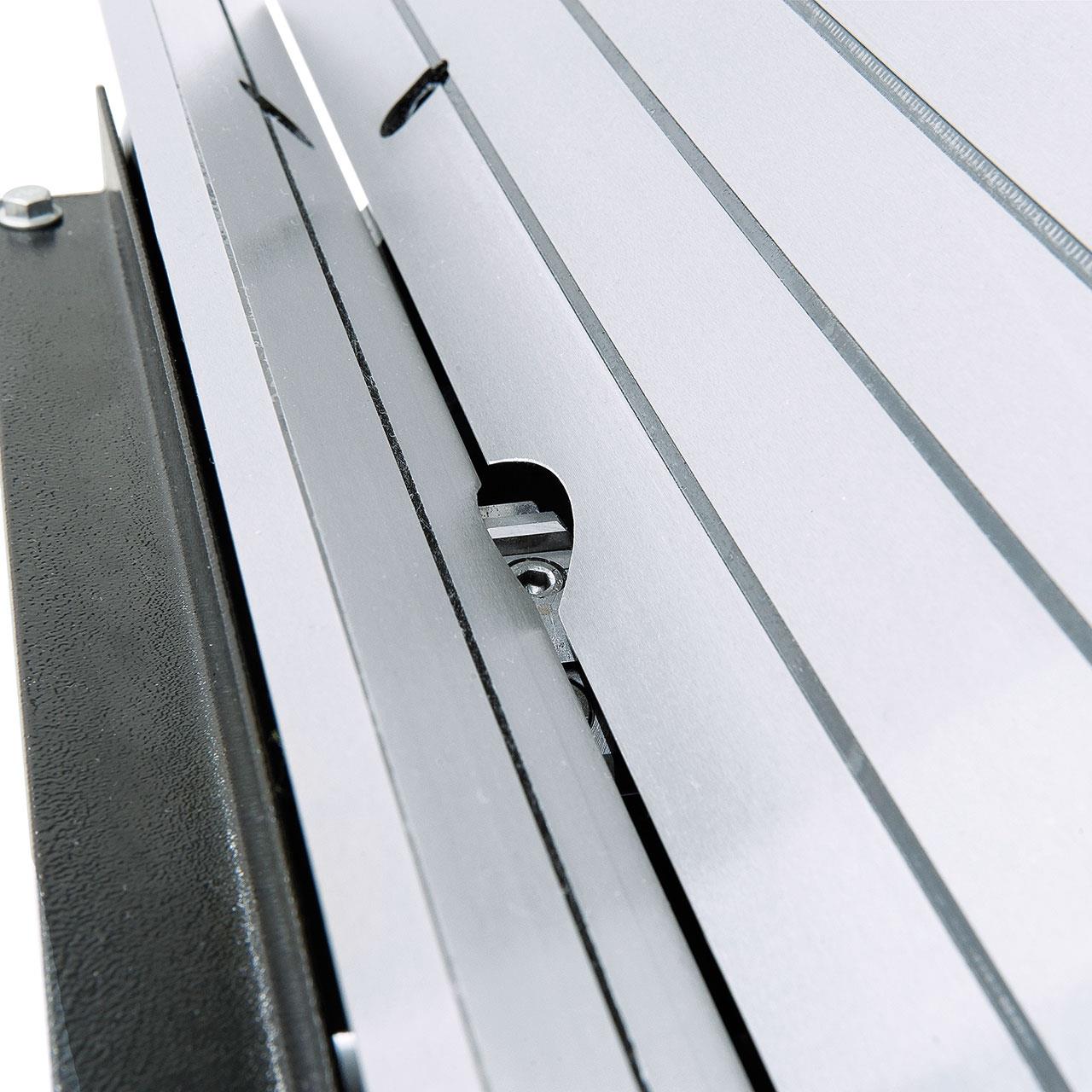 Großdimensionierte Führungsleiste für ein sicheres Auflegen des Werkstückes.