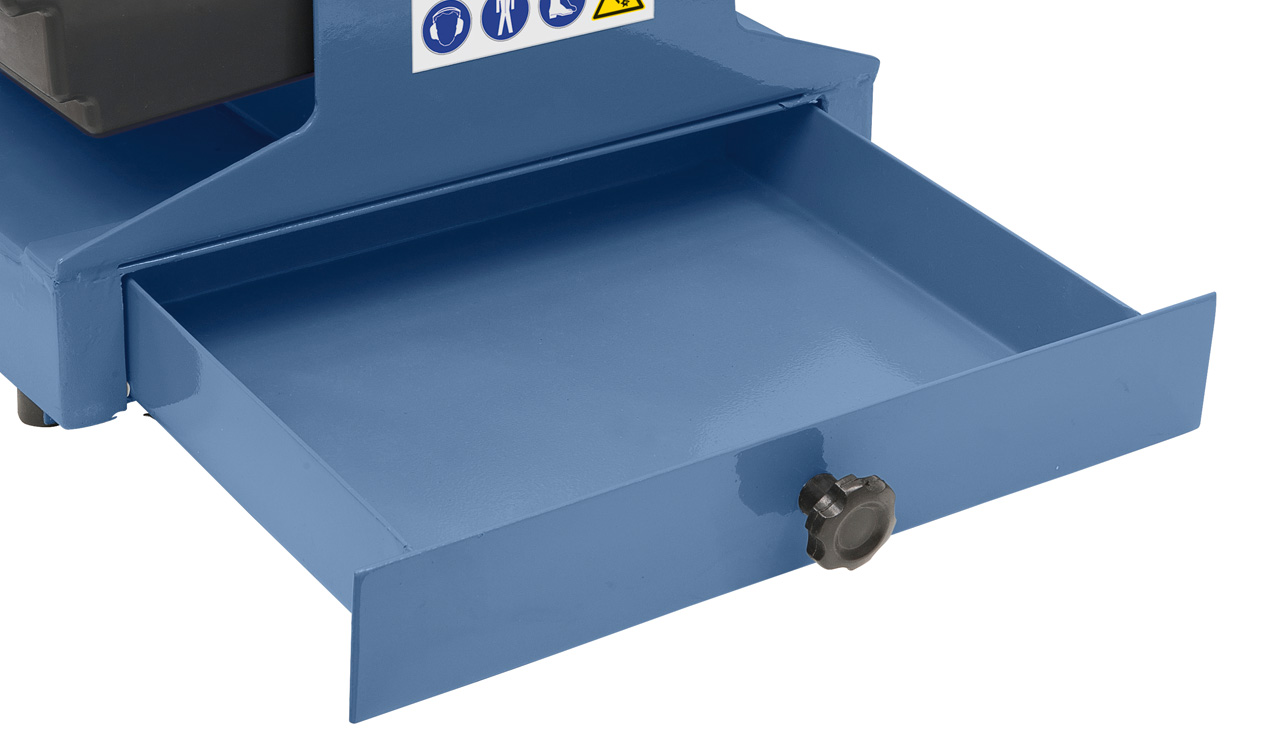 Serienmäßig mit Werkzeuglade zum Aufbewahren des Zubehörs.