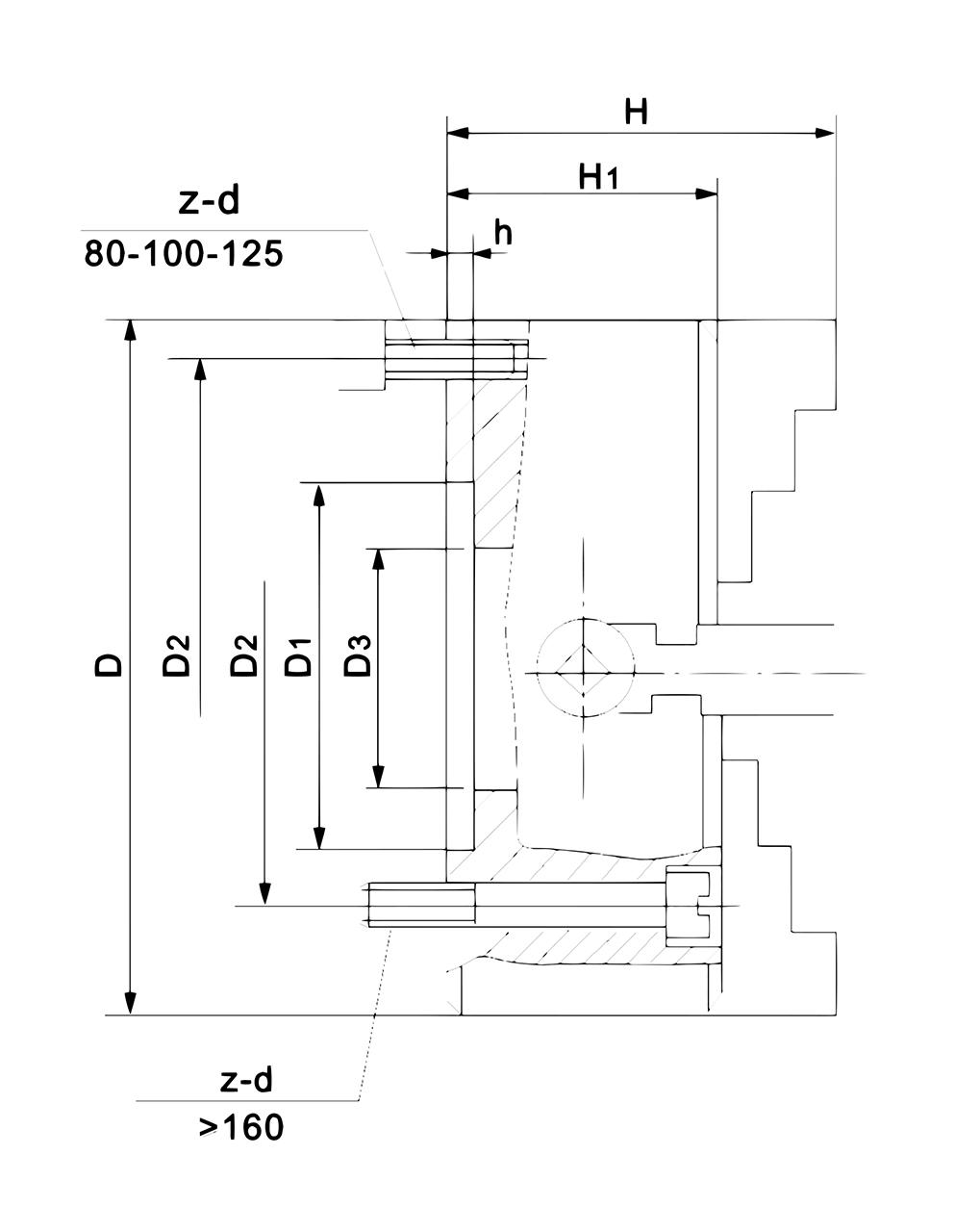 Ab einem Durchmesser von 160 mm wird die Planscheibe von vorne auf den Flansch montiert