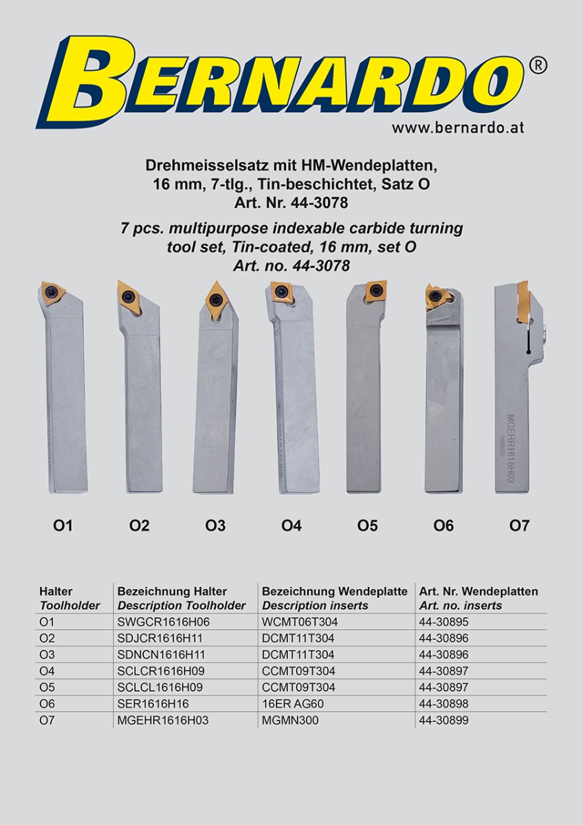 44-3078 Bernardo Drehmeisselsätze Drehmeisselsatz mit HM-Wendeplatten, 16 mm, Satz O
