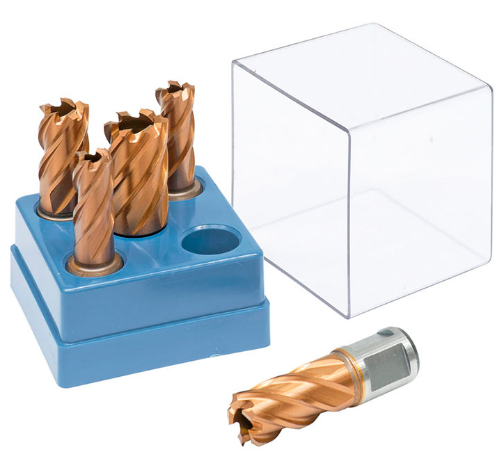 Die Kernbohrer HSS-Vario PLUS sind auch Hochleistungsschnellstahl gefertigt und gewährleisten durch die Hartstoffbeschichtung eine längere Lebensdauer. Weitere Vorteile der Hartstoffbeschichtung sind eine verbesserte Spanableitung, höhere Verschleißfestigkeit sowie hohe Wirtschaftlichkeit. Vorteil der Kernbohrer gegenüber den Spiralbohrern ist, dass nicht die gesamte Bohrfläche, sondern nur ein schmaler Ring zerspant wird. Dadurch ist der Kraftaufwand wesentlich geringer.