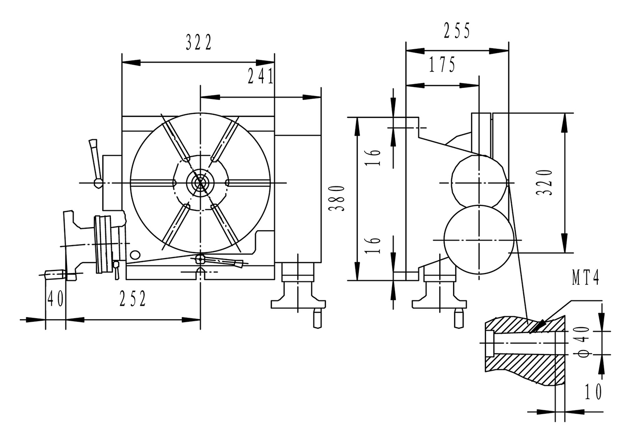 Großdimensionierte Pinole, Zustellung (100 mm) erfolgt über ein Handrad