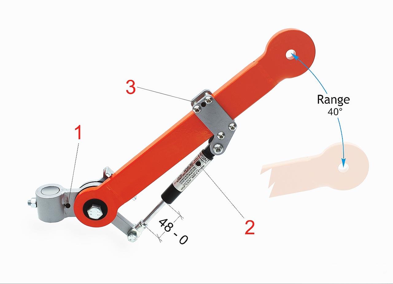 Anmerkung: Der Gasdruckzylinder PMG 60 / 185 wird empfohlen bei der Verwendung von 3 Gelenkarmen. Achtung: Gelenkarm nicht enthalten