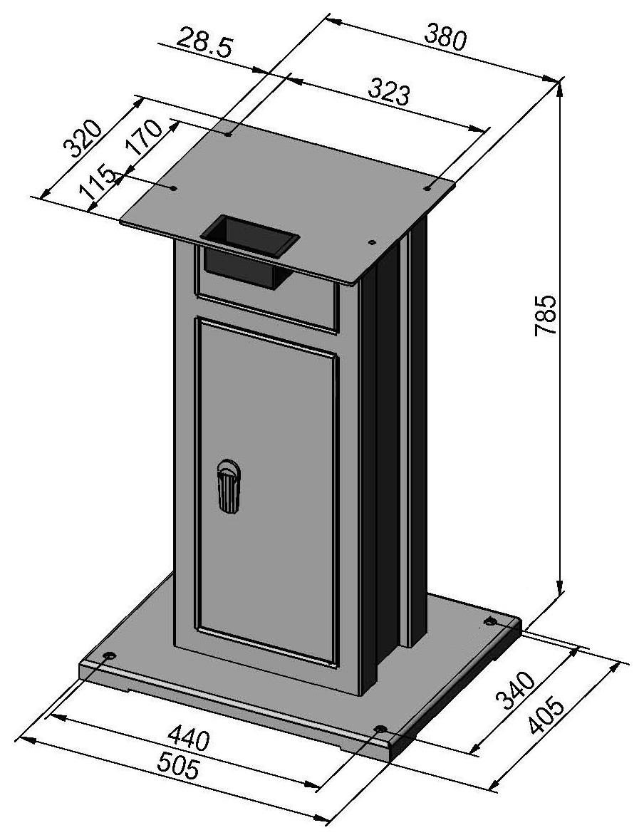 Untergestell Modell G in stabiler Stahlblechausführung, geeignet für die Modelle 300 mm und 350 mm.