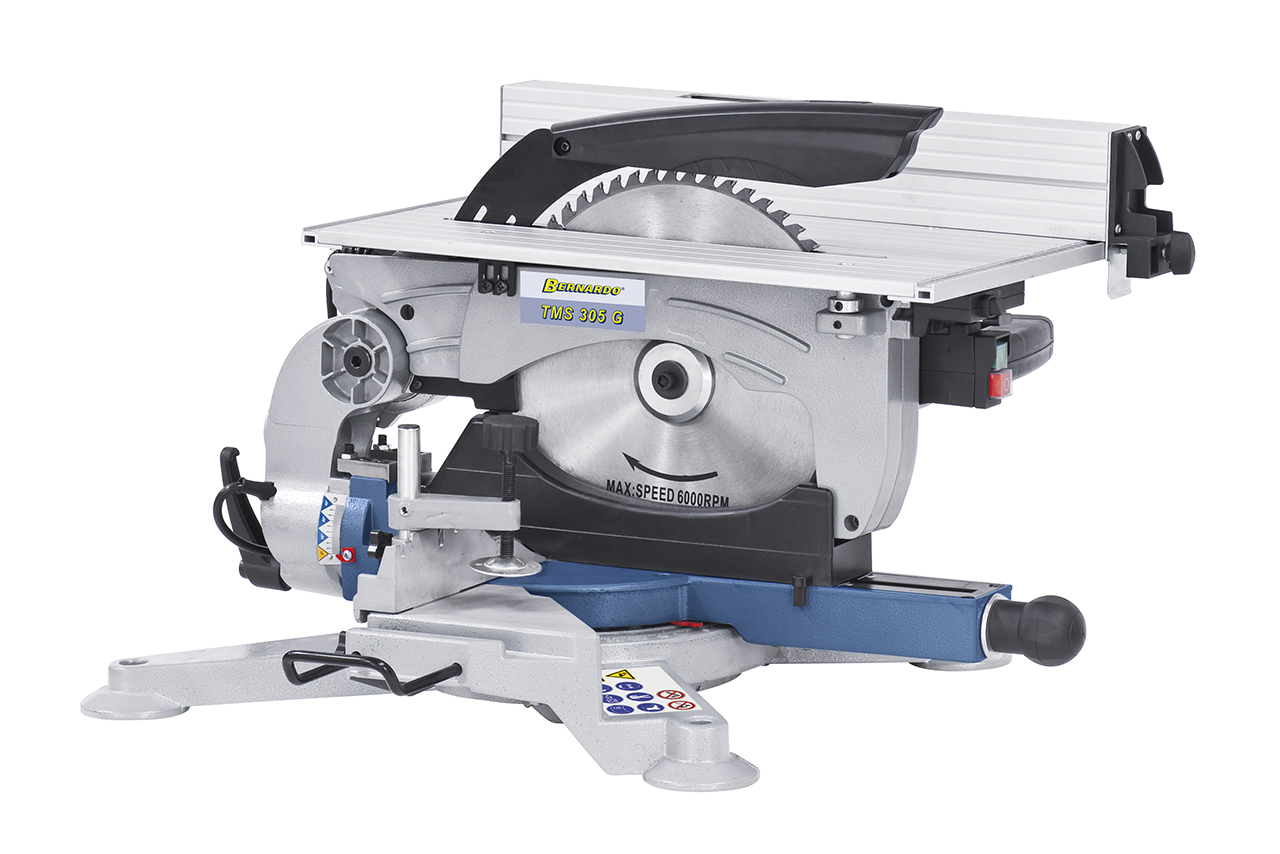 Das Modell TMS 305 G vereint drei Funktionen in einem Arbeitsgerät – Kapp-, Gehrungs-und Tischkreissägen und sind daher ideal für Innenausbauarbeiten wie z.B. Laminat- und Parkettbodenverlegung, Ablängen von Rohren und Profilen,… Durch das geringe Eigengewicht ist dieses Modell auch optimal für den mobilen Einsatz geeignet.
