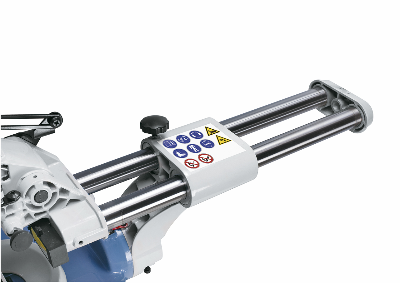 Hohe Stabilität durch Doppelsäulenführung des Sägeaggregates