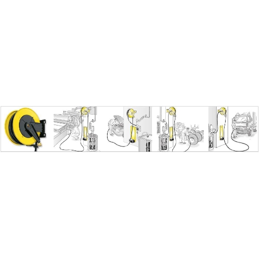 Robuste und kompakte ELMAG-Aufroller ermöglichen den praktischen und sicheren Transport aller Arten von flüssigen und gasförmigen Medien mittels flexiblen Schläuchen.