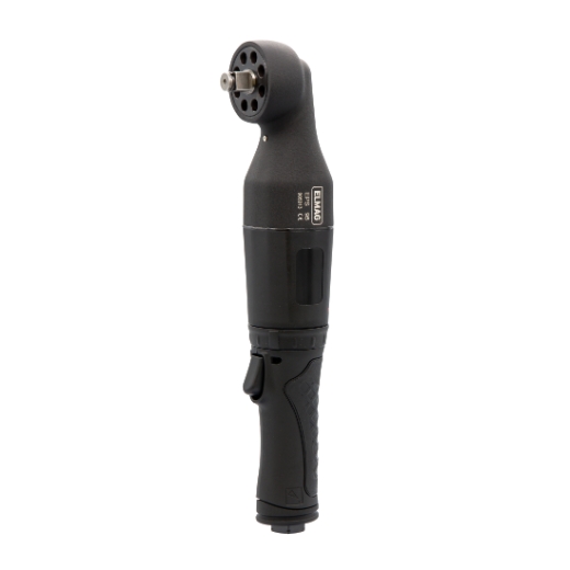 Winkelschlagschrauber mit 70 mm Kopfhöhe inkl. Vierkant Stoßfestes Composit-Gehäuse Sehr leicht und handlich Drehschalter für Rechts-/Linkslauf mit 2 Leistungsstufen (Rechtslauf) Jumbo-Schlagwerk Abluft durch den Handgriff
