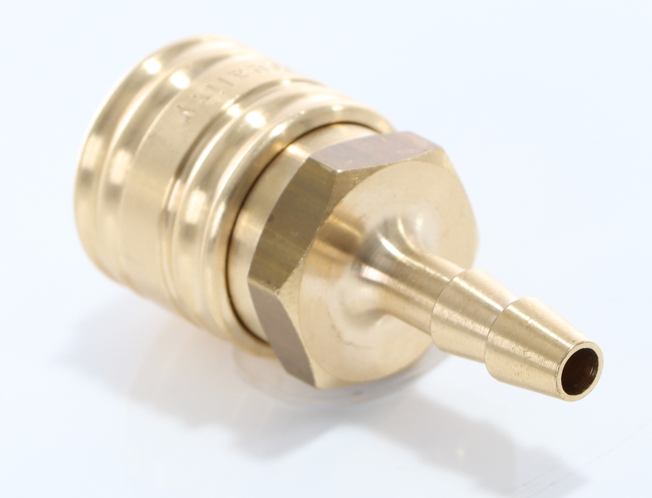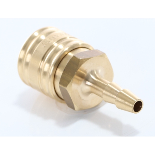 Kupplung mit Schlauchtülle, Messing ø 6 mm beliebige Einbaulage Durchflussrichtung: vorzugsweise Kupplung vor Stecker