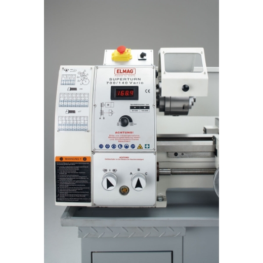 Die SUPERTRN 700/140 Vario wird durch einen kräftigen 1.000 Watt-Motor angetrieben und bietet eine maximale Drehgröße über dem Schlitten von Ø 165 x 700 mm. Der Spindelbohrungsdurchmesser beträgt 26 mm. Die Maschine ist auch als Solomodell erhältlich und später mit der Fräs- und Bohreinheit MFB 20 Vario ergänzbar. Die 600 Watt starke MFB 20 Vario ermöglicht, unterstützt durch eine digitale Bohrtiefenanzeige, Bohrungen in Stahl bis Ø 20 mm und Gewindebohrungen bis M 14. Für erweiterte Fräsfunktionen ist ein Koordinatentisch erforderlich. Dieser wird, neben weiterem hochwertigem Spezialzubehör für den Ausbau des Bearbeitungszentrums, optional angeboten.