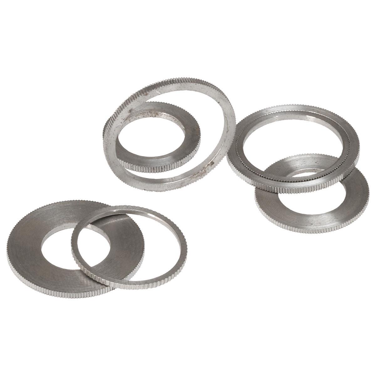 Spezialzentrierte Reduzierringe für Diamanttrennscheiben Diamanttrennscheiben müssen seiten- und höhenschlagfrei befestigt sein. Im Normalfall genügt vor dem Befestigen das plane Aufsetzen der Trenn- scheibe auf die Wellennabe der Schneideinheit. Bei Spezial-Trennblättern kann zur Anpassung und Zentrierung an der Wellennabe ein Reduzierring erforderlich sein.