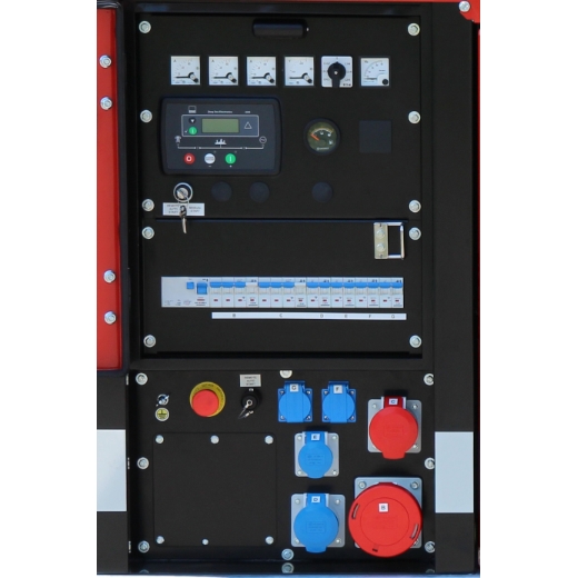 - Abschaltung: Not Stopp, Magneto-Stopp, niedrigem Öldruck, Übertemperatur, niedrigem Kühlmittelstand, niedrigem Kraftstoffstand, Überlastung, Kurschluss ThM-SS, FI 30mA-30A reg.