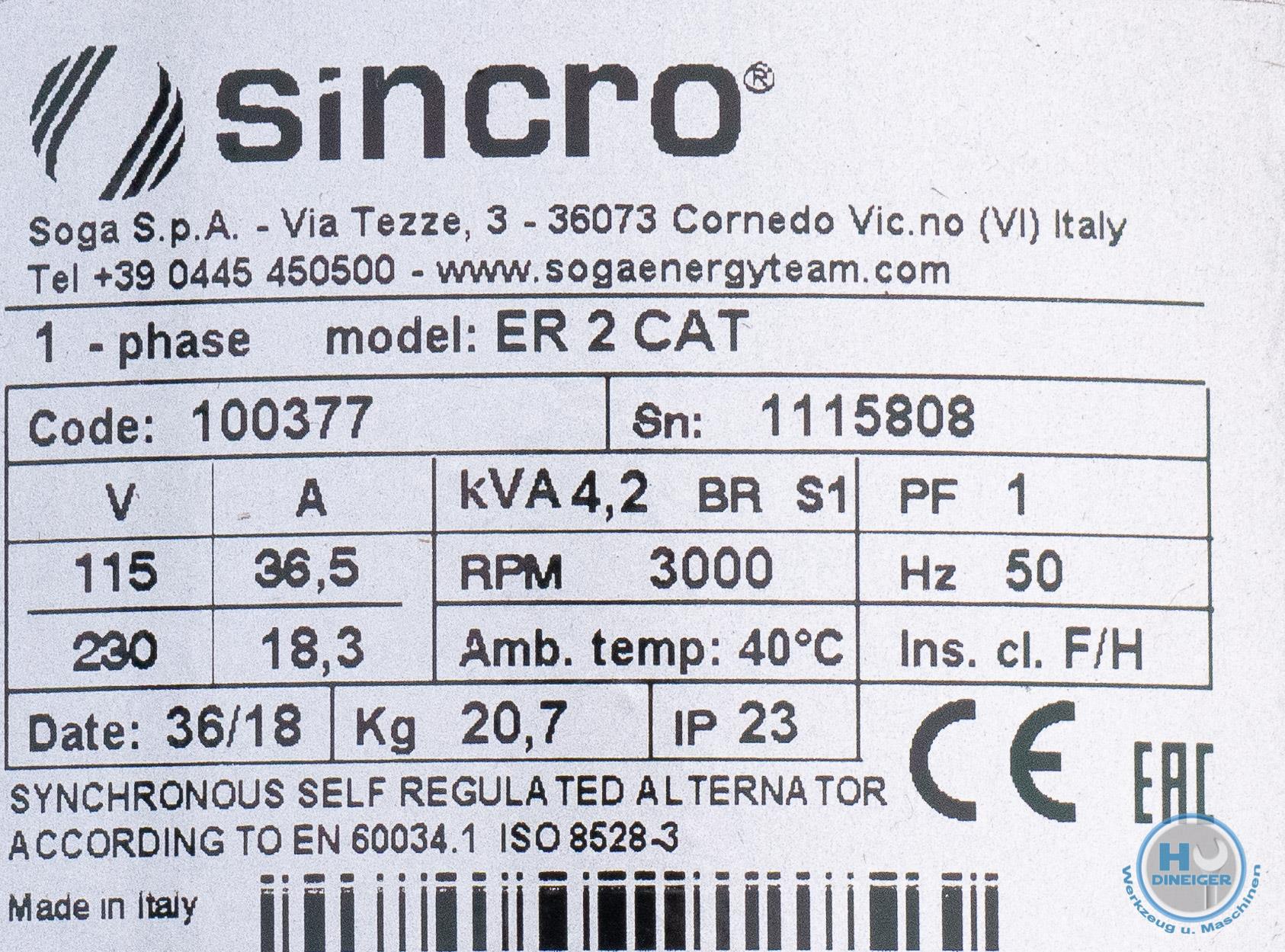 Handelsmarke/Typ Sincro ER2CAT - 4,2kVA 230V - bürstenlos