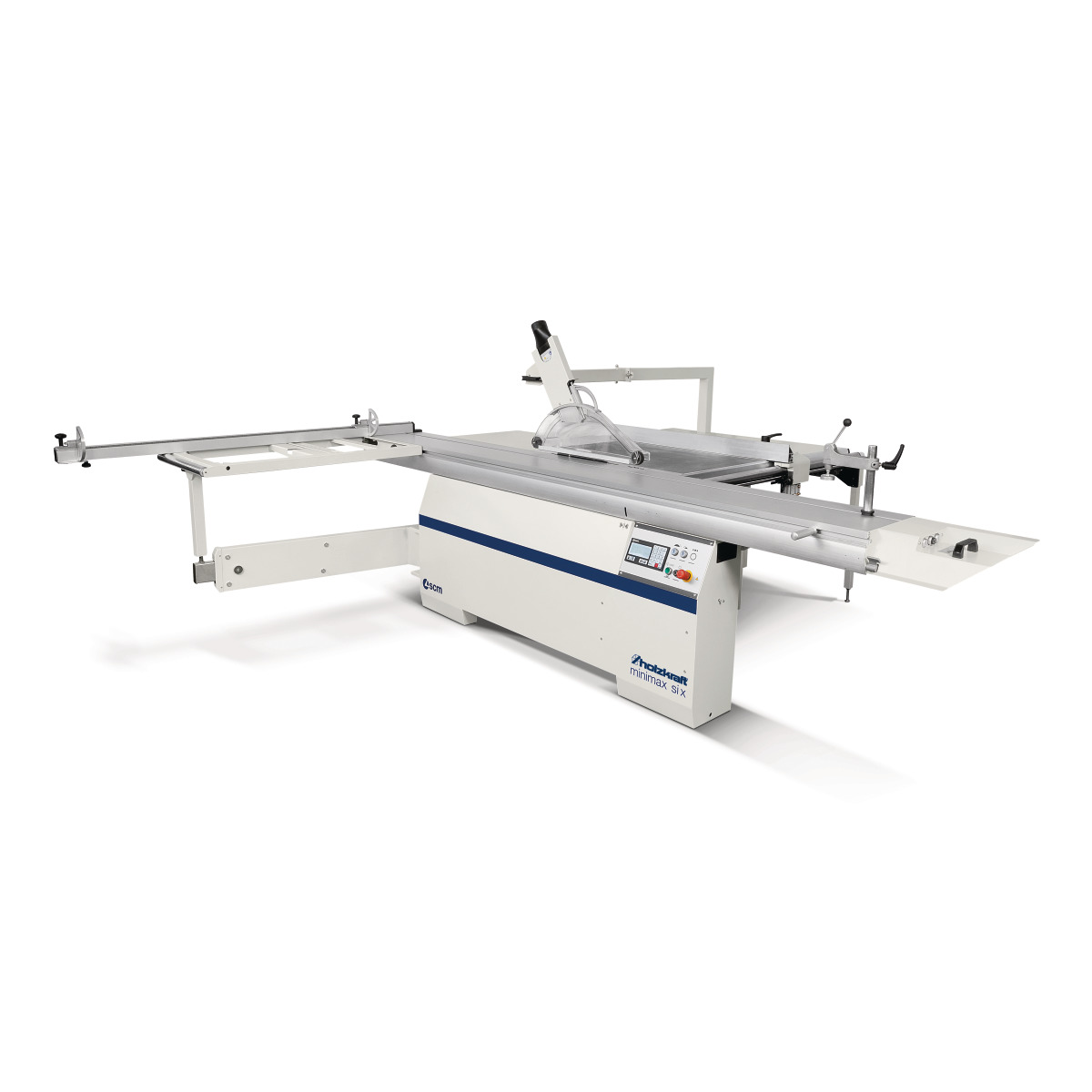 - A 3-Ausführung mit Dreiachsensteuerung zusätzlich mit motorischem Parallelanschlag mit elektronischer Positionierung, Positionsanzeige über einen Encoder, Verstellung über Kugelumlaufspindel, stufenlose Einstellung über Schalter oder automatisches Positionierung und Möglichkeit inkrementaler Verstellung