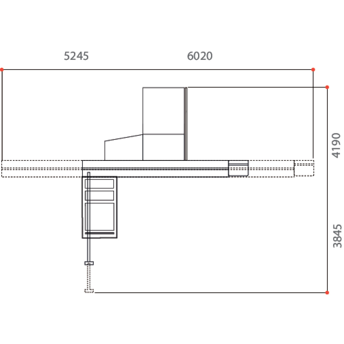 - Platzbedarf Breite/Tiefe: 3830 mm
