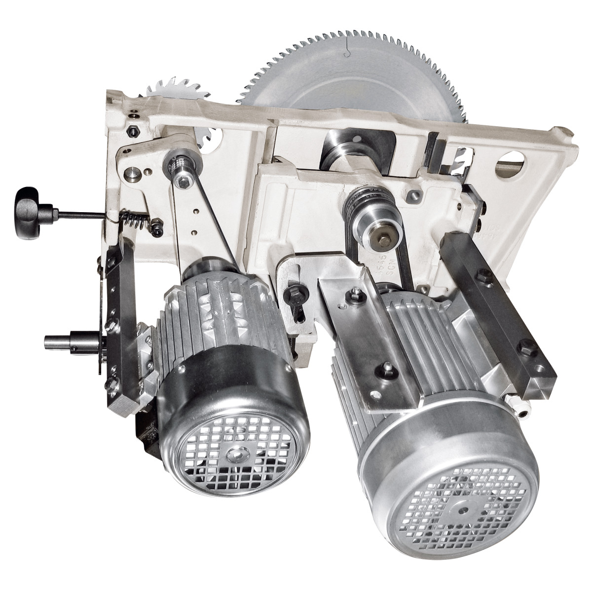 - Grauguss-Sägeaggregat mit dauerhaft präziser zweifacher Schwenksegmentführung und Null-Punktschwenkung,
