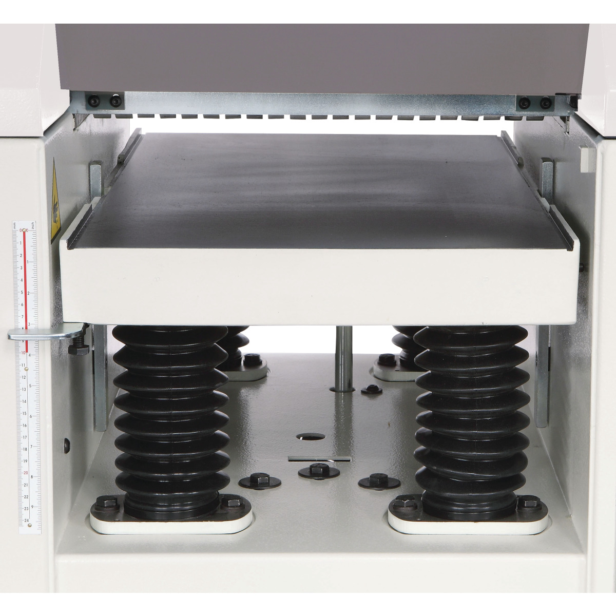 - Die Dickentischverstellung erfolgt über ein Handrad mit numerischer Anzeige für die eingestellte Hobelhöhe (1/10 mm genau)