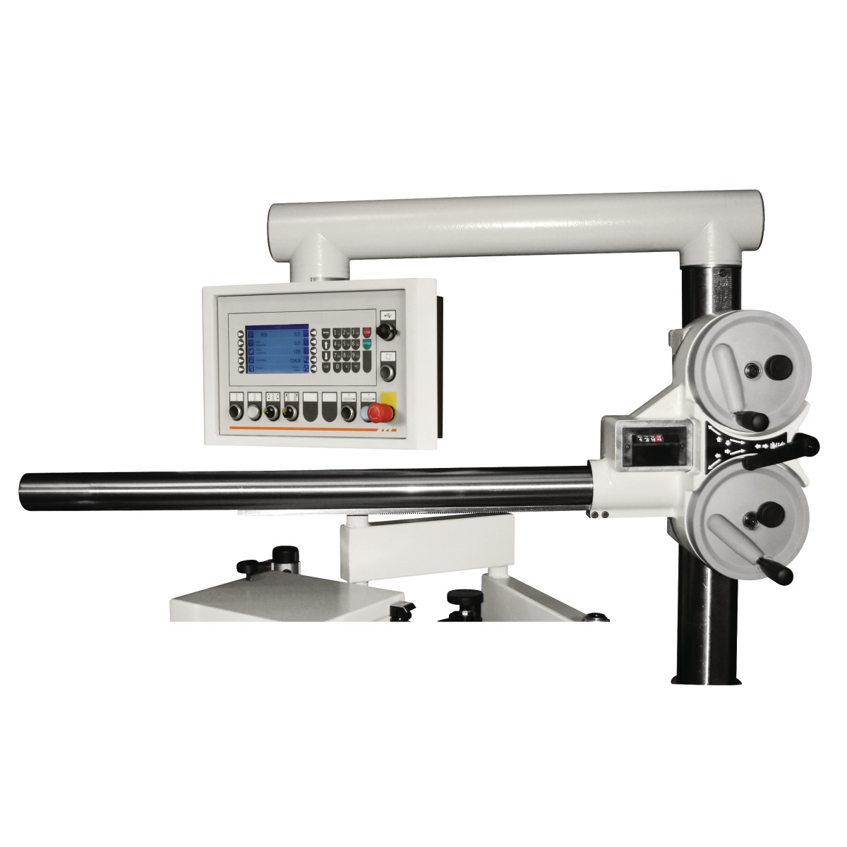 Beschreibung: Kreuzsupport für Vorschubapparat an Bedienpultsäule mit:- Manueller Höhenverstellung des Vorschubs durch Handrad mitmechanischer Anzeige- Manueller horizontale Verstellung des Supports durch HandradDiese Vorrichtung ermöglicht das Wegschwenken des Vorschubes vomArbeitstischAnm.: Nur in Verbindung mit schwenkbarem Bedienpult