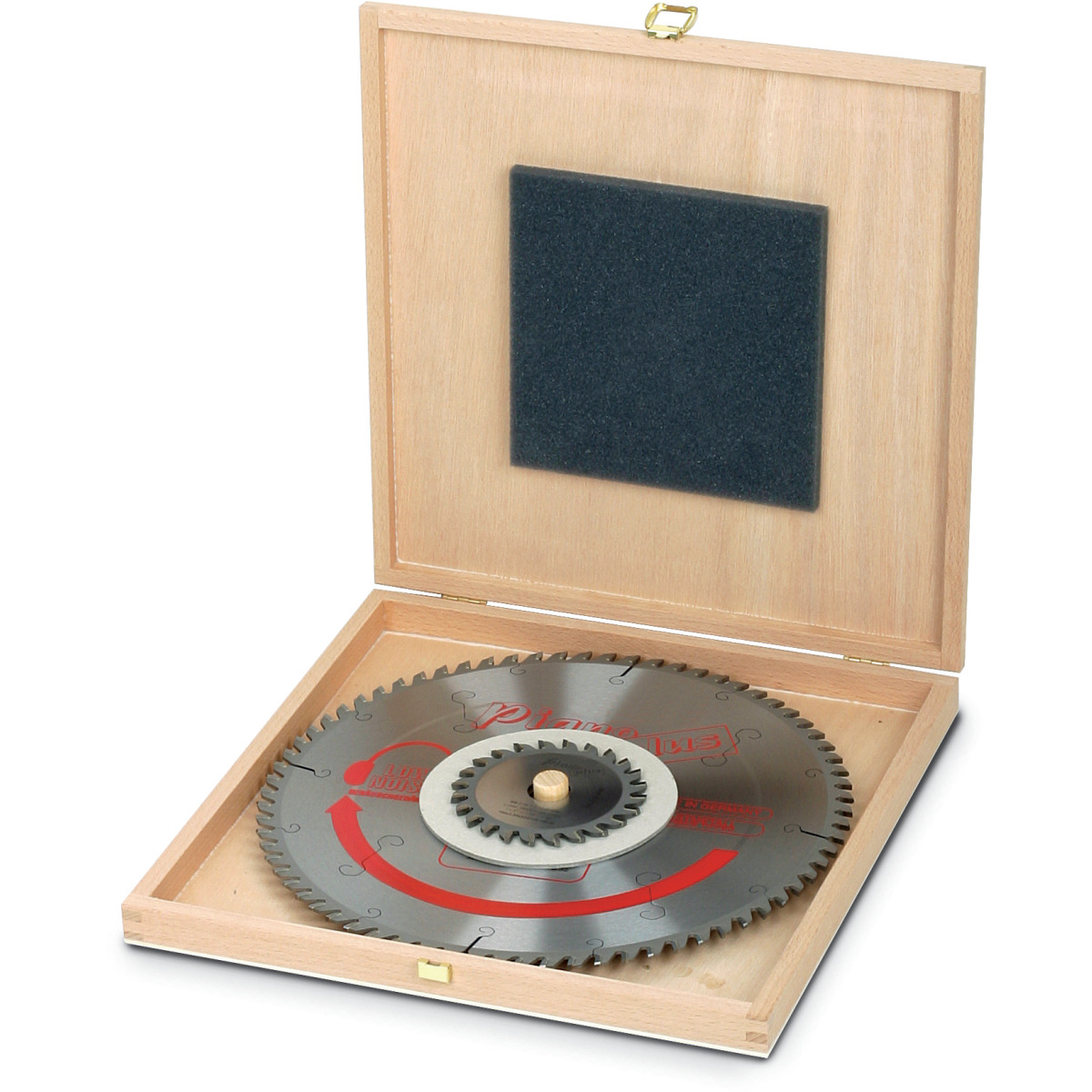 - Einsatzbereich: Fertigschnitte in beidseitig beschichteten Span-, MDF- oder sonstigen Werkstoffplatten