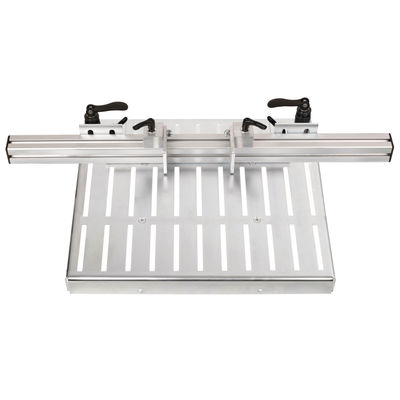 - Erweiterung der Aufspannplatte nach links, rechts oder vorne durch optionale Tischverlängerung möglich, einfache Montage durch Einhängen an den seitlichen Befestigungsschienen