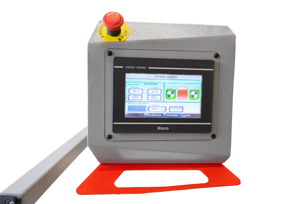 - elektrische Höhenverstellung des Hauptsägeblatts (über Display)