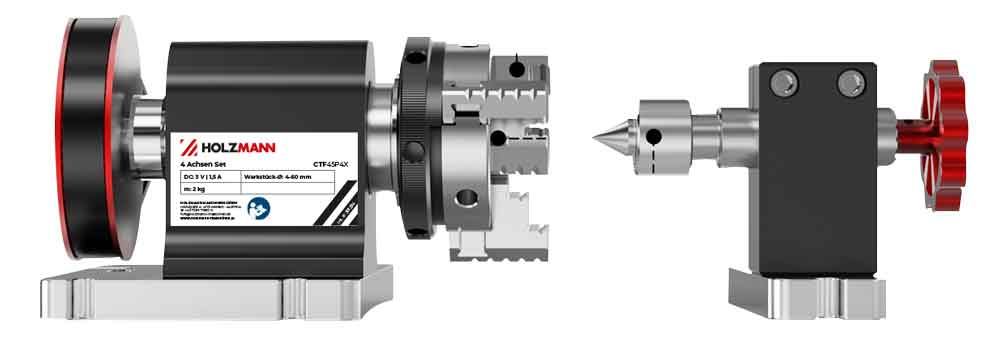 Beschreibung:Das HOLZMANN 4 Achsen Set CTF45P4x ermöglicht die Bearbeitung von rotationssymmetrischen Bauteilen. Die Ansteuerung und Anbindung erfolgen direkt über die Schnittstellen welche die CNC Tischfräse CTF45P_230V zur Verfügung stellt.
