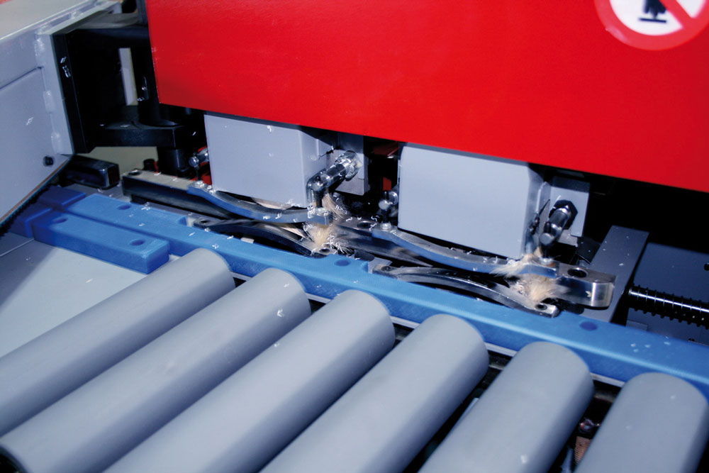 Das Formfräsaggregat profiliert die Kante durch zwei Fräsaggregate. Die Profilmesser können je nach Gebrauch verstellt oder ausgetauscht werden.