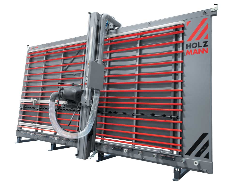 Die HOLZMANN Vertikalplattensäge VPS4222_400V ermöglicht es Platten mit 4,2m horizontal und 2,2m vertikal zu bearbeiten. Automatische Verstellung des Lattenrosts für eine sichere Bearbeitung in horizontaler Schnittrichtung. Zwei mechanische Anschläge für untere und mittlere Plattenauflage. Der mittlere Anschlag ist mit einem digitalen Messsystem ausgestattet. Die mittlere Plattenauflage ist schwenkbar. Das leistungsstarke Sägeaggregat ist mit einem Vorritzer ausgestattet dieser kann wahlweise verwendet werden. Die Höhenposition des Sägeaggregats ist Dank des digitalen Messsystem auf dem Kontrollpult ablesbar und erleichtert somit das Arbeiten. Anbindung für den Anlauf der Absauganlage im Schaltsystem vorhanden.