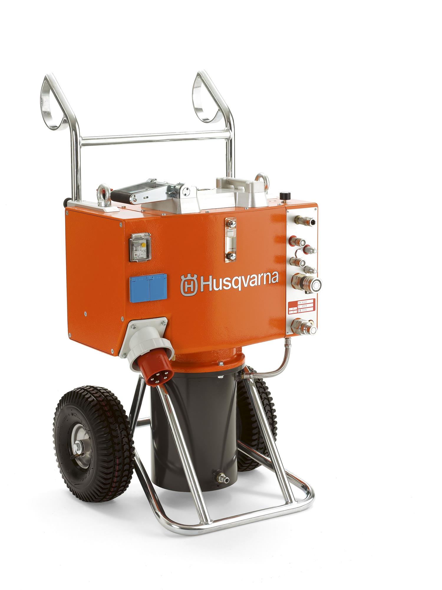 Das elektrisch betriebene Hydraulikaggregat PP 455 E wurde eigens für die Wandsäge WS 463 und die Seilsäge CS 2512 entwickelt. Es ist mit einem wassergekühlten Elektromotor versehen und verfügt über eine Elektronik, die es dem Bediener erlaubt, während des gesamten Sägevorgangs mit voller Leistung zu arbeiten. Der Elektromotor ist unter dem Tank angebracht, um den Schwerpunkt nach unten zu verlagern und die Stabilität zu verbessern.