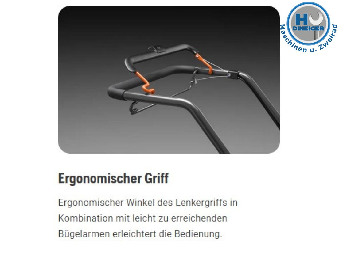 Die ergonomische Neigung des Lenkers in Kombination mit den leicht erreichbaren Bügelarmen erleichtert die Bedienung.