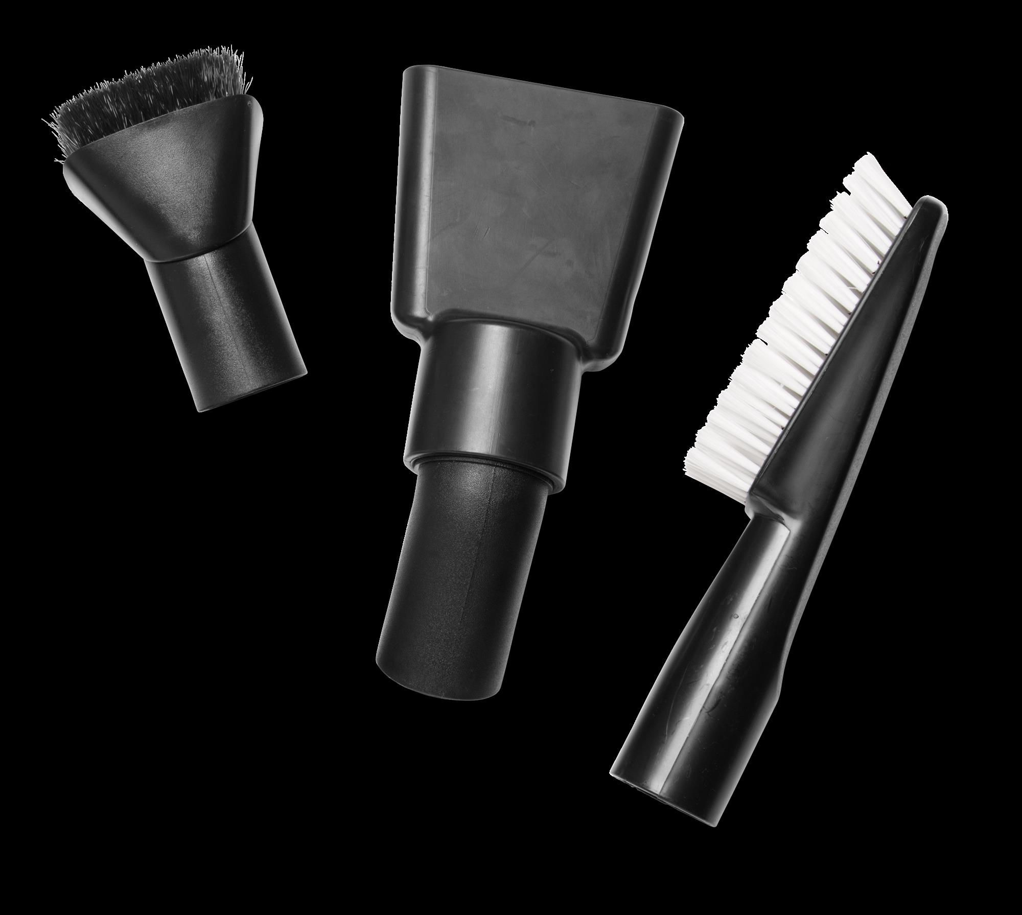 Ein Satz bestehend aus drei Aufsätzen zur Erweiterung der Einsatzmöglichenkeiten: eine Rundbürste, eine Staubbürste und eine Gummidüse