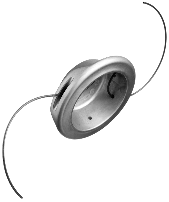 Kann mit einer Vielzahl an unterschiedlichen Trimmerfäden verwendet werden. Der Kopf besitzt unterschiedliche Haltevorrichtungen, um für unterschiedliche Fadenstärken einen guten Halt gewährleisten zu können.