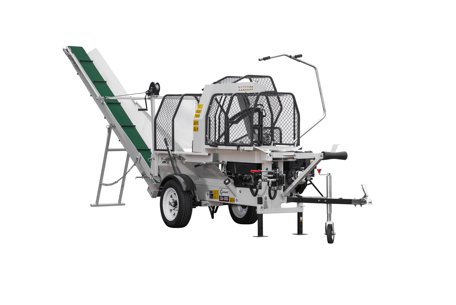 - Verarbeitung von Stammhölzern durch Sägen und Spalten in einem Durchgang