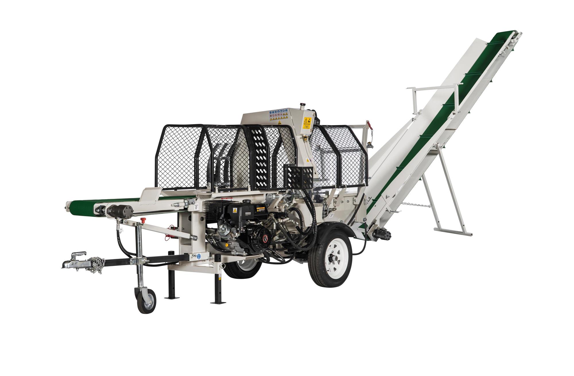 -Integriertes, hydraulisches Zuförderband um die Sägespaltmaschine mit Material zu versorgen
