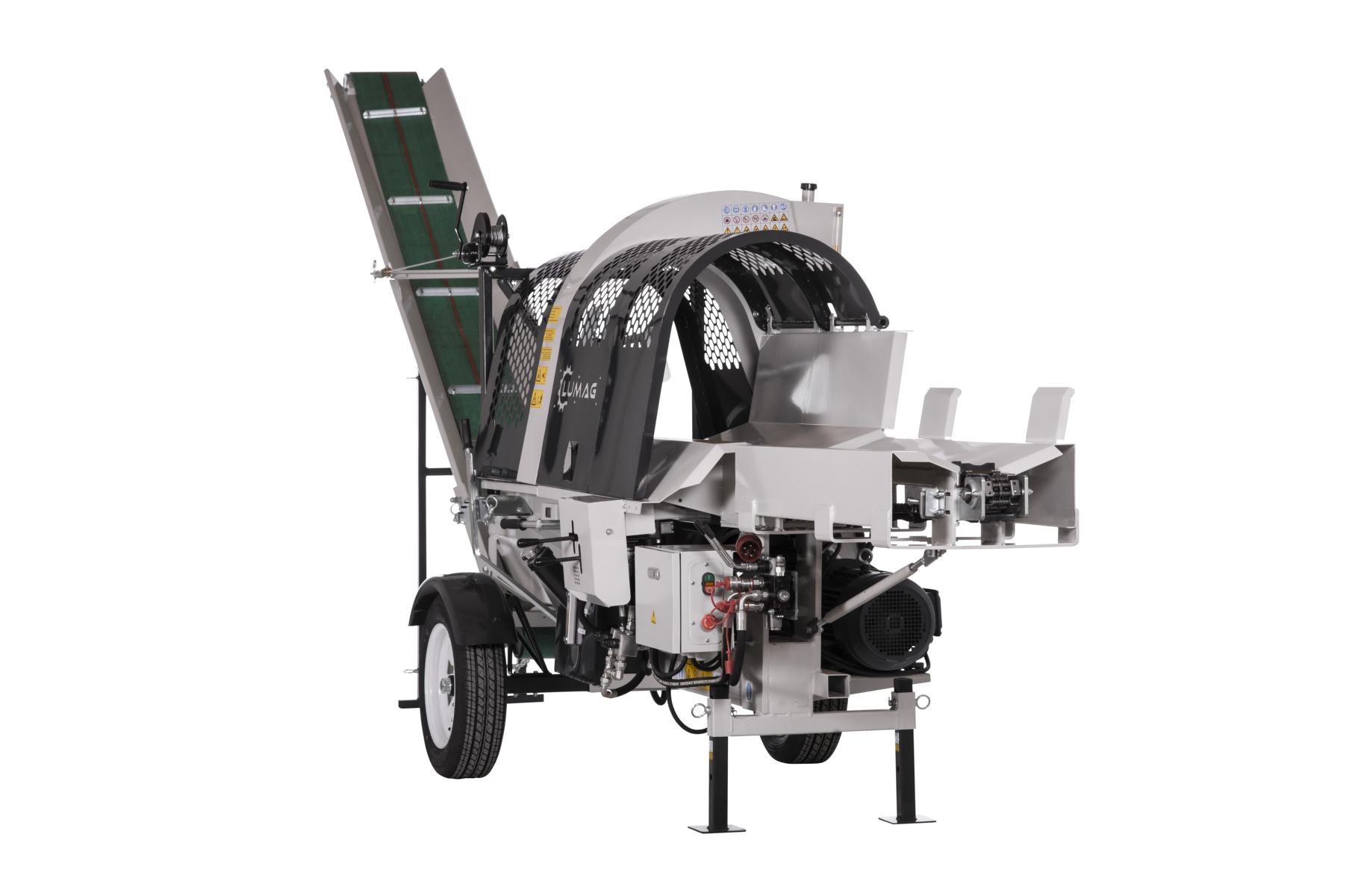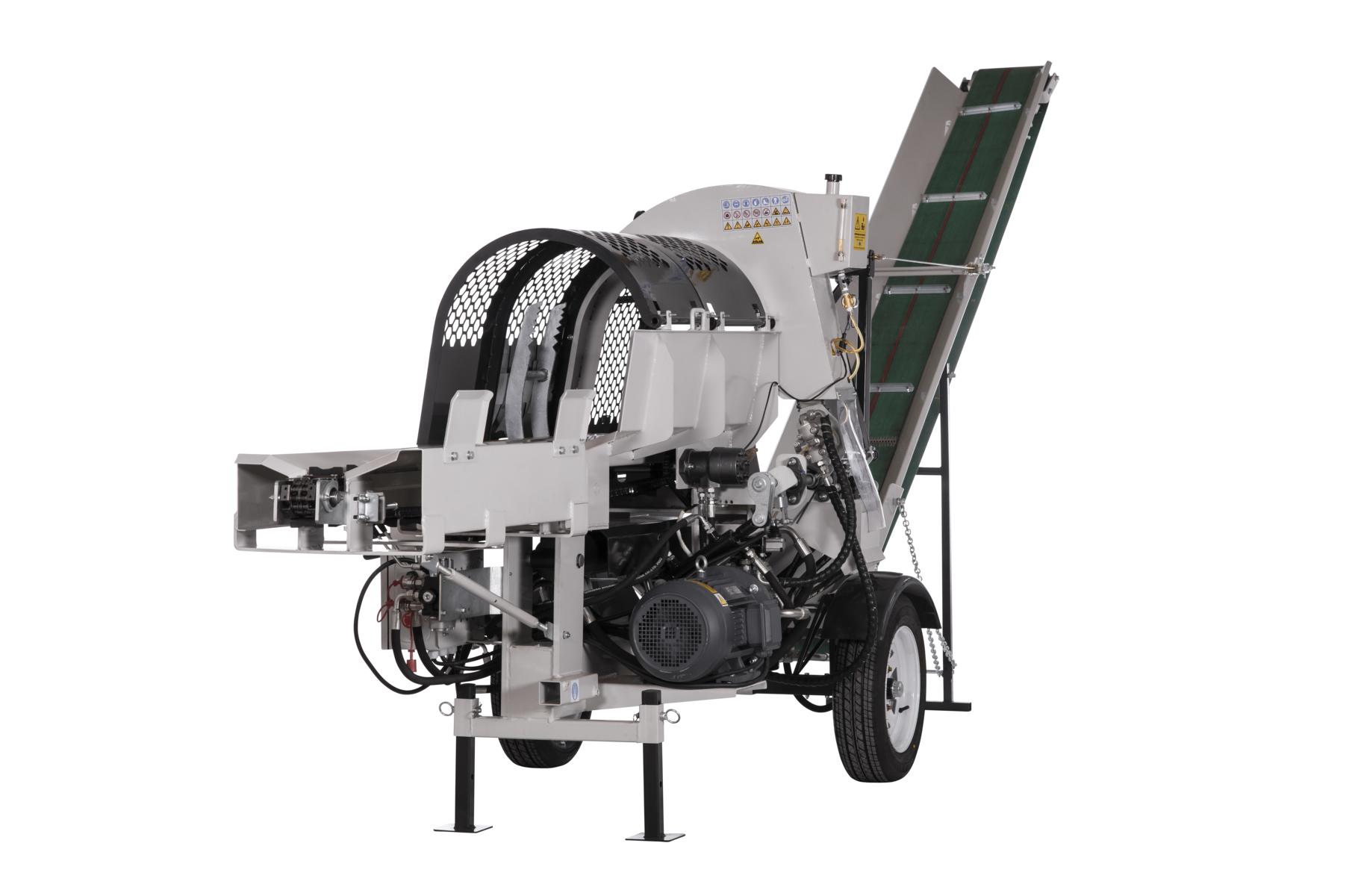 – Integrierte, hydraulische Zuförderkette um die Sägespaltmaschine mit Material zu versorgen