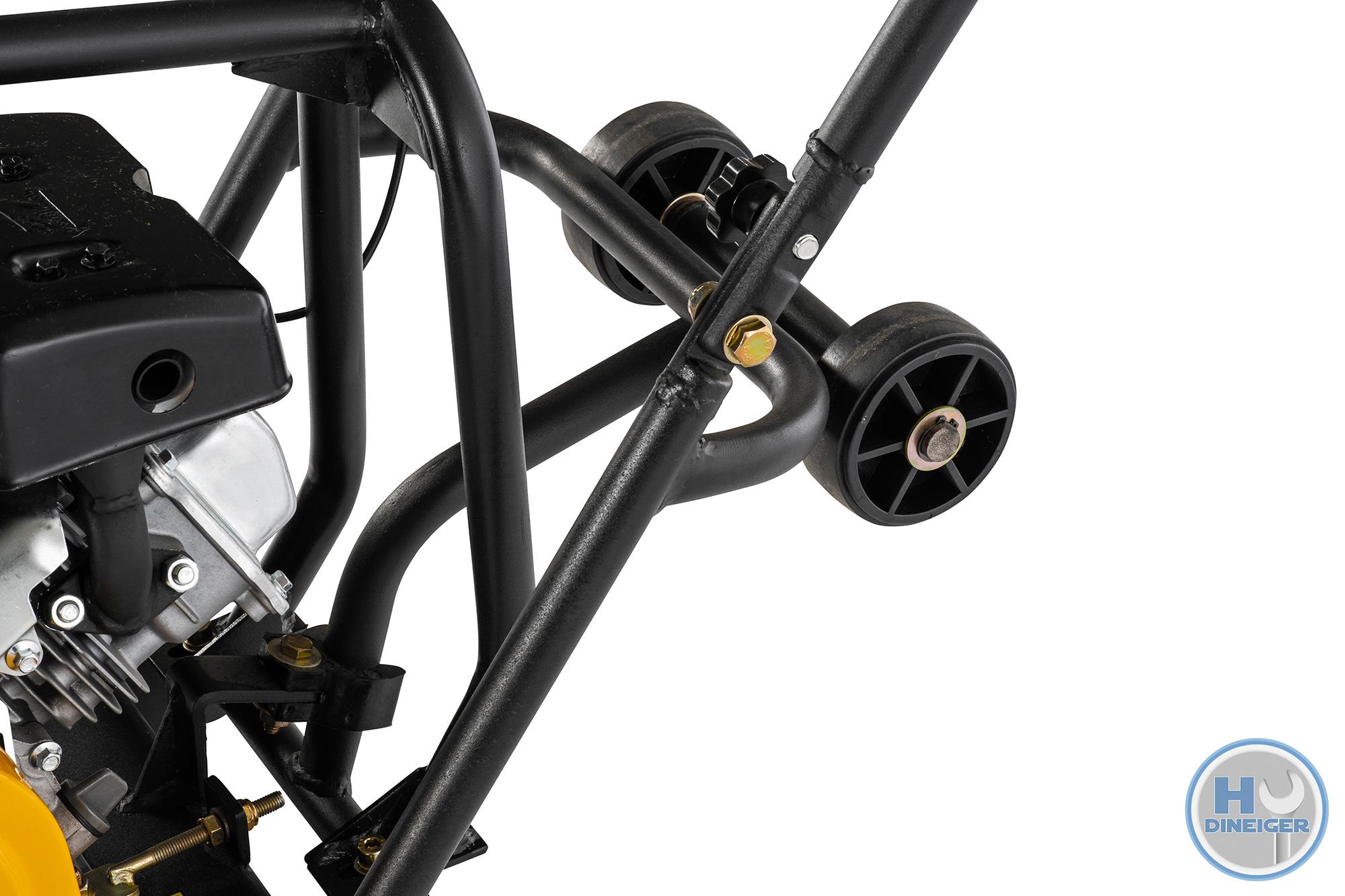 - Die vorwärts laufende Vibrationsplatte ist kompakt, leicht und dadurch sehr handlich im Gebrauch.