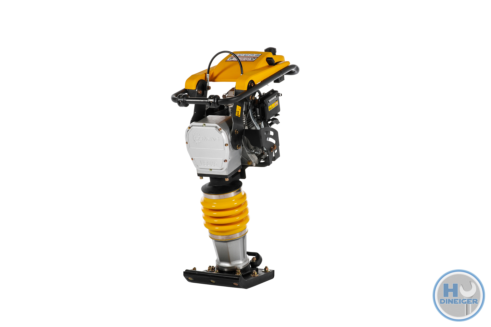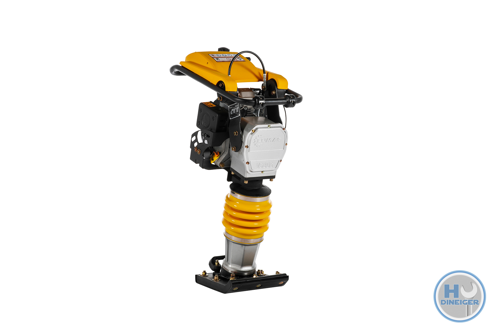 Der Vibrationsstampfer von LUMAG besteht aus einem Kraftstoffmotor, einer Kupplung, einem Kraftstofftank, einem Stampfsystem, einem Stampfeinsatz und einem Handgriff. Der Motor überträgt Leistung über das Stampfsystem und den Stampfeinsatz und erzeugt Schlagkraft zum Verdichten des Bodens. Der Bediener führt und steuert die Maschine von hinten mithilfe des Handgriffs.