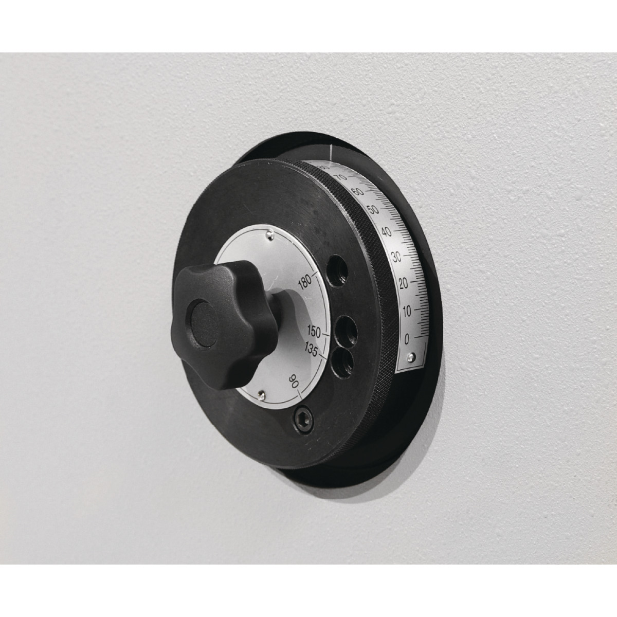 - Serienmäßig mit manueller Einstellung des Biegewinkels mittels Noniusring