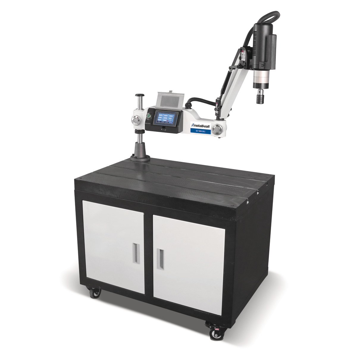 - Einstellung von Gewindegröße, Drehzahl, Steigung und Schneidtiefe über Touchscreen am Schwenkarm