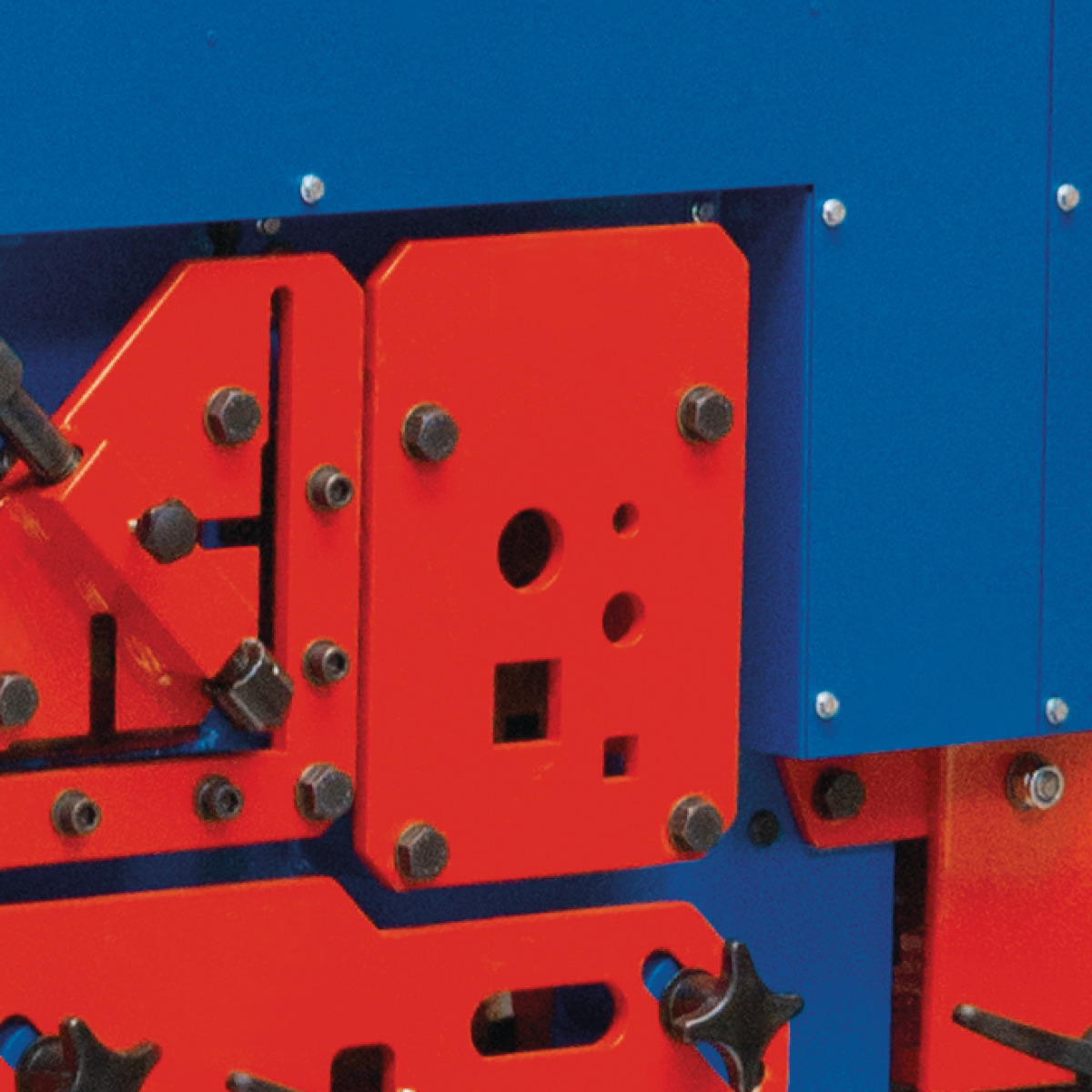 - Stanze mit verstellbarem Anschlag mit Skala, Flachstahlschere und Ausklinker mit verstellbaren Anschlägen