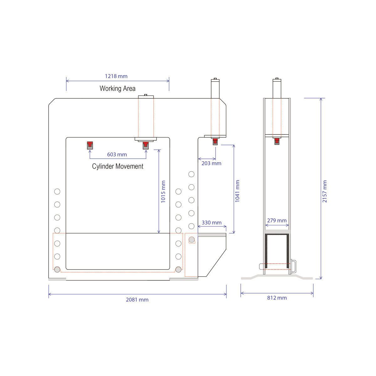 - Hydraulische Steuerung des Hubs und der Rechts-/Linksbewegung des Zylinders sowie der Höhenverstellung des Tisches
