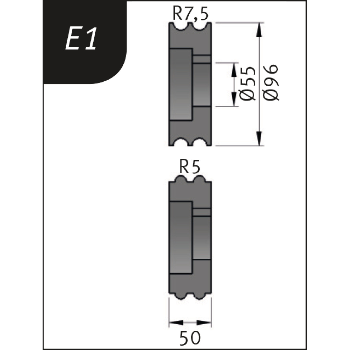 Metallkraft Biegerollensatz Typ E1, Ø 96 x 55 x 50 mm, R 7,5 / 5 mm