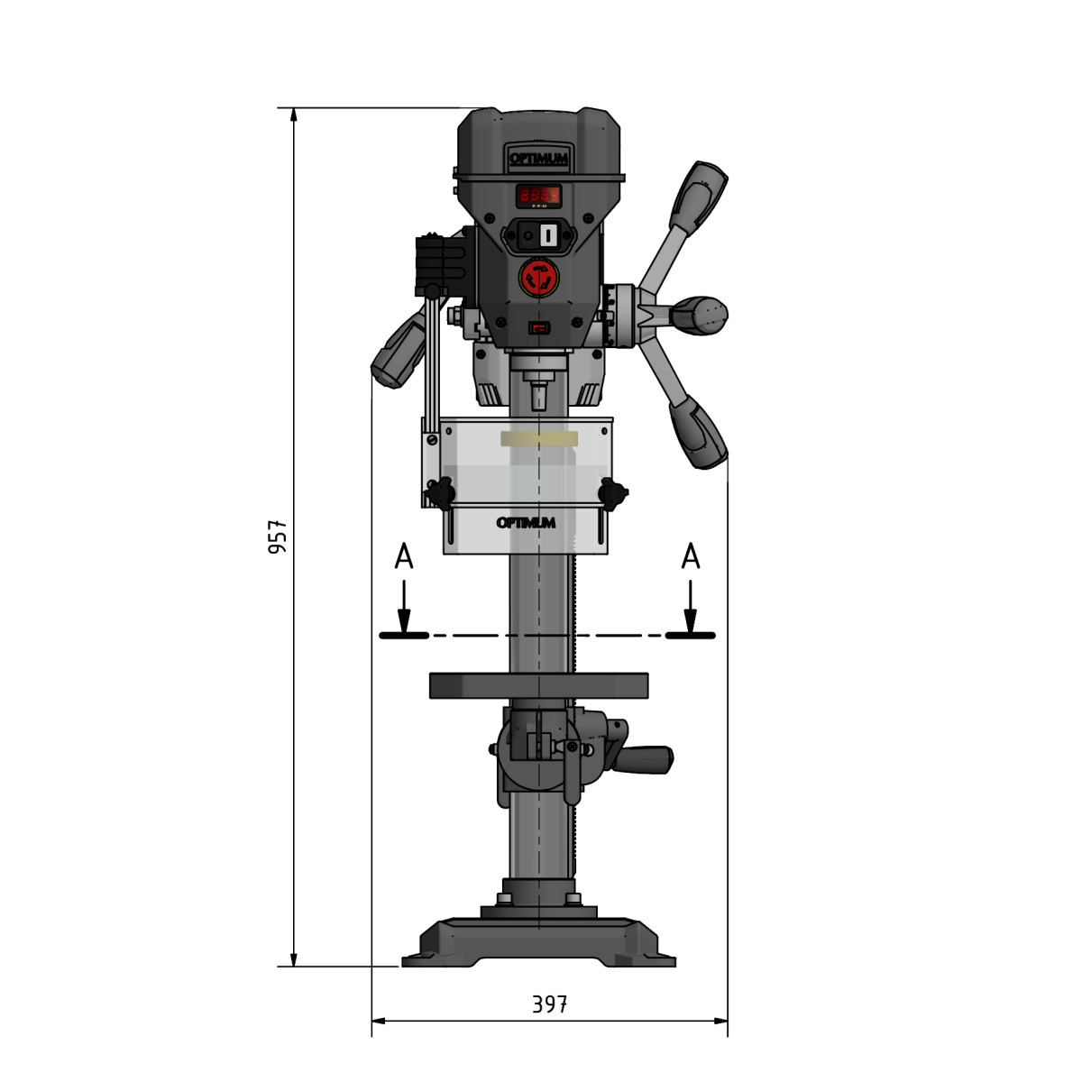 - Abstand Spindel - Bohrtisch max.: 423 mm