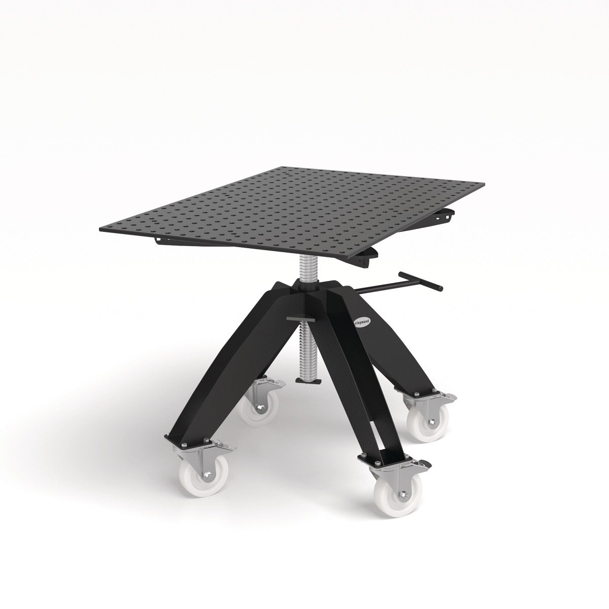 Der höhenverstellbare Drehtisch bietet Ihnen eine platzsparende und ergonomische Arbeitsgrundlage. Durch Drehen der Platte können Sie die Arbeitshöhe stufenlos einstellen. Mit der Feststelleinheit an der Seite fixieren Sie die Position der Arbeitsplatte. Das Basisgestell „Mobil“ ist mit stabilen Lenkrollen mit Feststellbremsen ausgestattet und bietet Ihnen dieselbe Tragfähigkeit wie bei der stationären Variante.