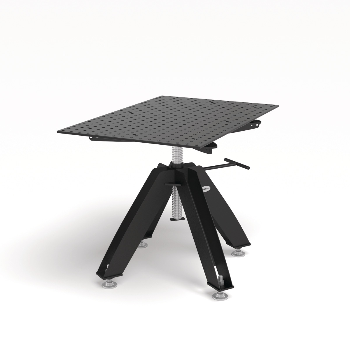 Der höhenverstellbare Drehtisch bietet Ihnen eine platzsparende und ergonomische Arbeitsgrundlage. Durch Drehen der Platte können Sie die Arbeitshöhe stufenlos einstellen. Mit der Feststelleinheit an der Seite fixieren Sie die Position der Arbeitsplatte. Das Basisgestell "Stationär" erhalten Sie mit stabilen Fußtellern für einen sicheren Stand.